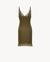 SEMI-SHEER, RIBBED, KNEE-LENGTH SLIP DRESS MADE WITH CERTIFIED SILK, FEATURING SCALLOPED LACE TRIM, A V NECKLINE, AND ADJUSTABLE SPAGHETTI STRAPS. - CERTIFIED SILK - V NECKLINE - ADJUSTABLE SHOULDER STRAPS - 100% SILK - STYLE ID 800158Y37SM1340 - MADE IN ITALY