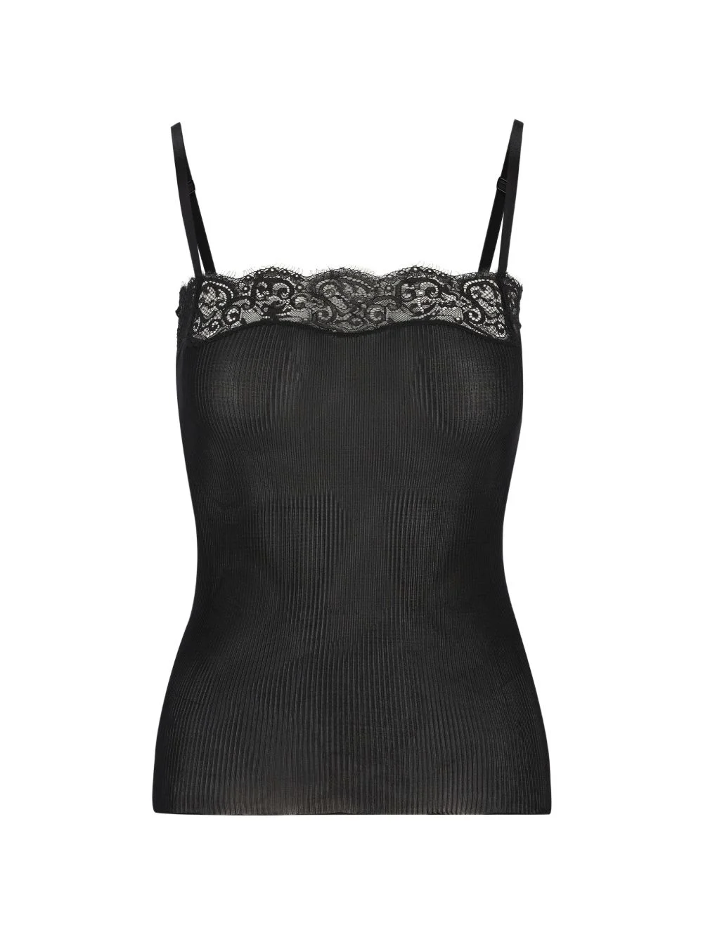 lace ribbed top Highlights - Black - Ribbed knit - Lace trim - Square neck - Adjustable shoulder straps Made in Italy Composition Fabric 100%