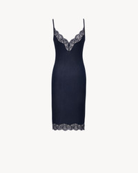 SEMI-SHEER, RIBBED, KNEE-LENGTH SLIP DRESS MADE WITH CERTIFIED SILK, FEATURING SCALLOPED LACE TRIM, A V NECKLINE, AND ADJUSTABLE SPAGHETTI STRAPS. - CERTIFIED SILK - V NECKLINE - ADJUSTABLE SHOULDER STRAPS - 100% SILK - STYLE ID 800158Y37SM4140 - MADE IN ITALY