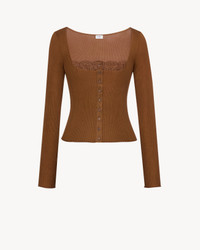 LACED SQUARE-NECK TOP IN RIBBED SILK JERSEY