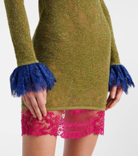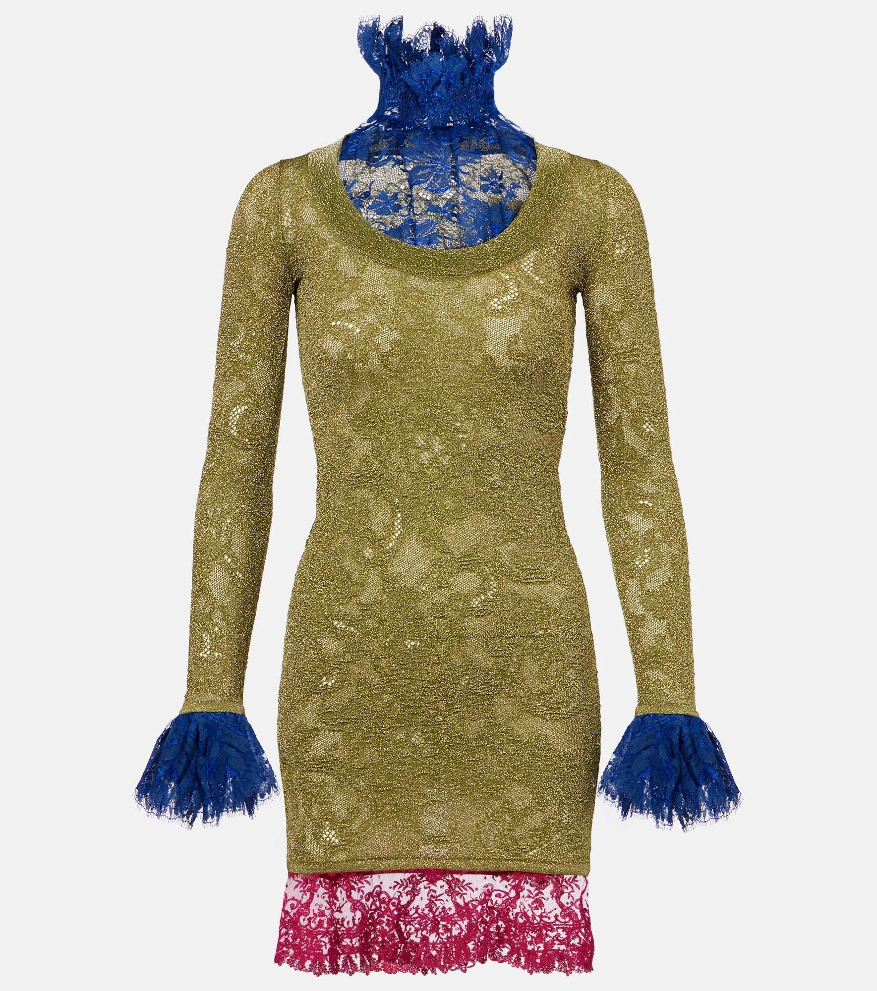 Since its conception in 1961, Saint Laurent has been coveted for its elegant Parisian aesthetic. Made in Italy from multicolored lace panels, this minidress features a lame bodice, poet sleeves, and ruffled neckline. Product Details - Material: 56% metallic fibres, 44% polyamide - Care instructions: dry clean - Made in Italy - Designer color name: Vert/Dore - Item color: green - Material II: 38% cotton, 36% polyamide, 26% polyester - Details: 38% cotton, 36% polyamide, 26% polyester - Trim: 87% polyester, 13% silk - Includes: box - Item number: P01032250