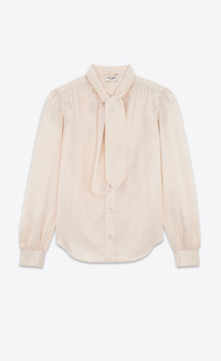 GATHERED BLOUSE MADE WITH ORGANIC SILK, FEATURING BISHOP SLEEVES AND A POINTED LAVALLIÈRE TIE. - 100% SILK - ORGANIC SILK - FRONT BUTTON CLOSURE WITH LAVALLIÈRE TIE AT THE NECK - LAVALLIÈRE NECKTIE - ONE-BUTTON MITERED CUFFS WITH CONCEALED ONE-BUTTON PLEATED PLACKET - STYLE ID 650235Y001W9601 - MADE IN ITALY