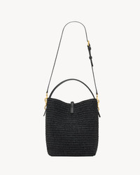 BUCKET BAG FEATURING A CASSANDRE HOOK CLOSURE, MADE WITH NATURAL WOVEN RAFFIA AND VEGETABLE-TANNED LEATHER. AN ADJUSTABLE AND DETACHABLE STRAP ALLOWS FOR BESPOKE CARRY OPTIONS. THE PIECE IS COMPLETE WITH A REMOVABLE ZIP POUCH. - BRONZE-TONED HARDWARE - CASSANDRE HOOK CLOSURE - ONE REMOVABLE ZIP POUCH - DIMENSIONS: 20 X 25 X 16 CM / 7.9" X 9.8" X 6.2" - HANDLE DROP: 9 CM / 3.5" - STRAP DROP: 40 CM / 15.7" - THE ITEMS SOLD ARE FROM PRIOR COLLECTIONS AND/OR MAY PRESENT SLIGHT IMPERFECTIONS OR MINOR DEFECTS, WHICH DO NOT ALLOW A SALE IN THE NORMAL DISTRIBUTION NETWORK OF THE BRAND. - RAFFIA, CALFSKIN LEATHER, BRASS - STYLE ID 773991GAAEC1000 - MADE IN MADAGASCAR