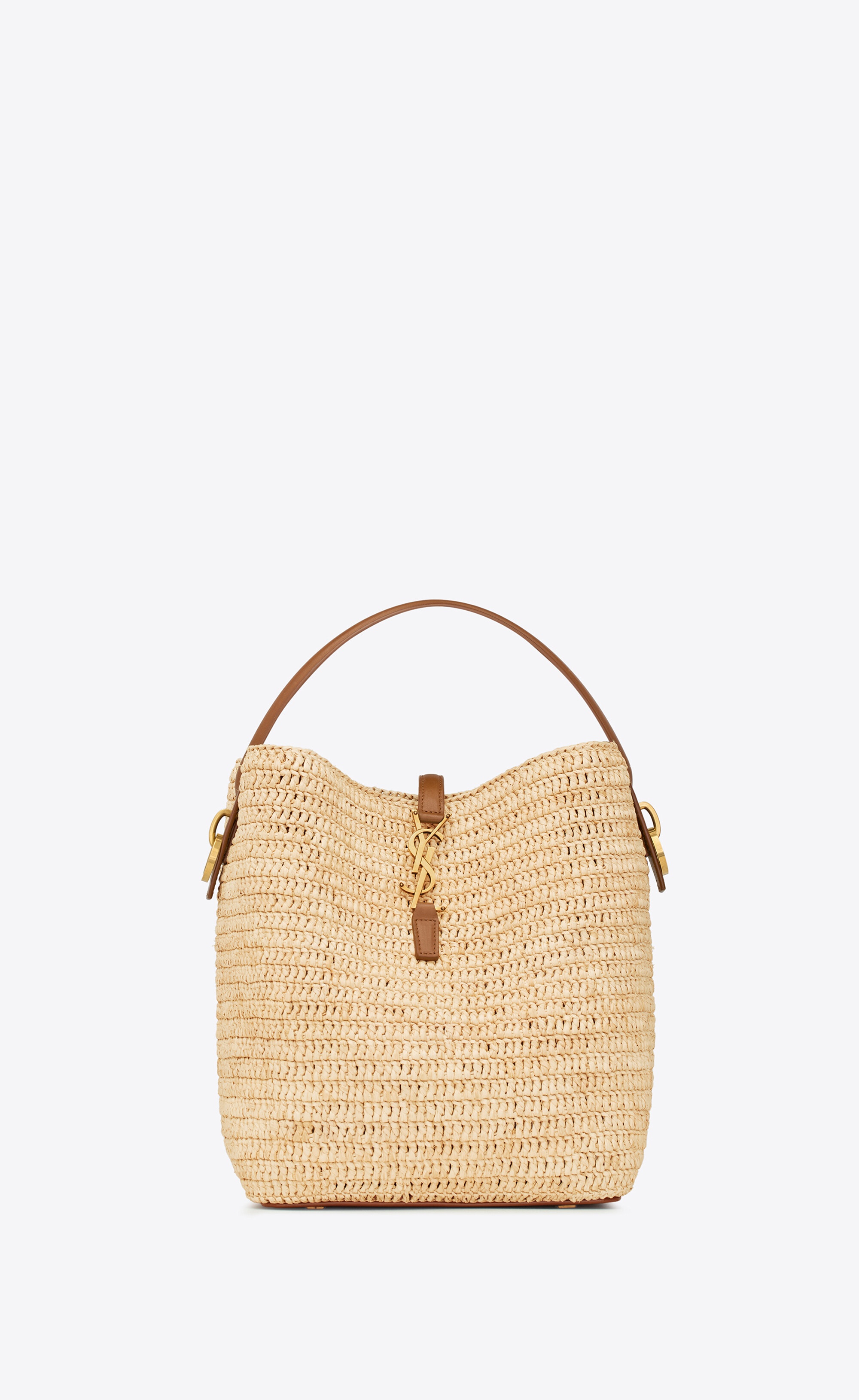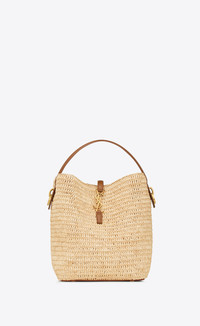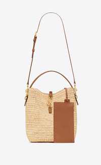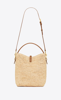 BUCKET BAG FEATURING A CASSANDRE HOOK CLOSURE, MADE WITH NATURAL WOVEN RAFFIA AND VEGETABLE-TANNED LEATHER. AN ADJUSTABLE AND DETACHABLE STRAP ALLOWS FOR BESPOKE CARRY OPTIONS. THE PIECE IS COMPLETE WITH A REMOVABLE ZIP POUCH. - RAFFIA, CALFSKIN LEATHER, BRASS - BRONZE-TONED HARDWARE - CASSANDRE HOOK CLOSURE - ONE REMOVABLE ZIP POUCH - DIMENSIONS: 20 X 25 X 16 CM / 7.9" X 9.8" X 6.2" - HANDLE DROP: 9 CM / 3.5" - STRAP DROP: 40 CM / 15.7" - STYLE ID 813336905 - MADE IN MADAGASCAR