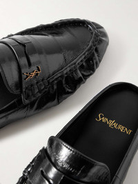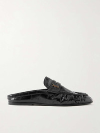 EDITORS'NOTES SAINT LAURENT's slippers are named after - and modeled on - classic loafers. They're crafted from glossy eel and have traditional penny slots and an easy backless design. Wears yours with everything from tailored to dresses. SIZE & FIT Fits true to size, please refer to SAINT LAURENT size guide below: - EU 36 = UK 3/ US 6/ IT 36/ FR 37 - EU 36.5 = UK 3.5/ US 6.5/ IT 36.5/ FR 37.5 - EU 37 = UK 4/ US 7/ IT 37/ FR 38 - EU 37.5 = UK 4.5/ US 7.5/ IT 37.5/ FR 38.5 - EU 38 = UK 5/ US 8/ IT 38/ FR 39 - EU 38.5 = UK 5.5/ US 8.5/ IT 38.5/ FR 39.5 - EU 39 = UK 6/ US 9/ IT 39/ FR 40 - EU 39.5 = UK 6.5/ US 9.5/ IT 39.5/ FR 40.5 - EU 40 = UK 7/ US 10/ IT 40/ FR 41 - EU 40.5 = UK 7.5/ US 10.5/ IT 40.5/ FR 41.5 - EU 41 = UK 8/ US 11/ IT 41/ FR 42 - EU 41.5 = UK 8.5/ US 11.5/ IT 41.5/ FR 42.5 - EU 42 = UK 9/ US 12/ IT 42/ FR 43 DETAILS & CARE - Slight heel - Black glossed-eel - Slip on - Eel: South Korea