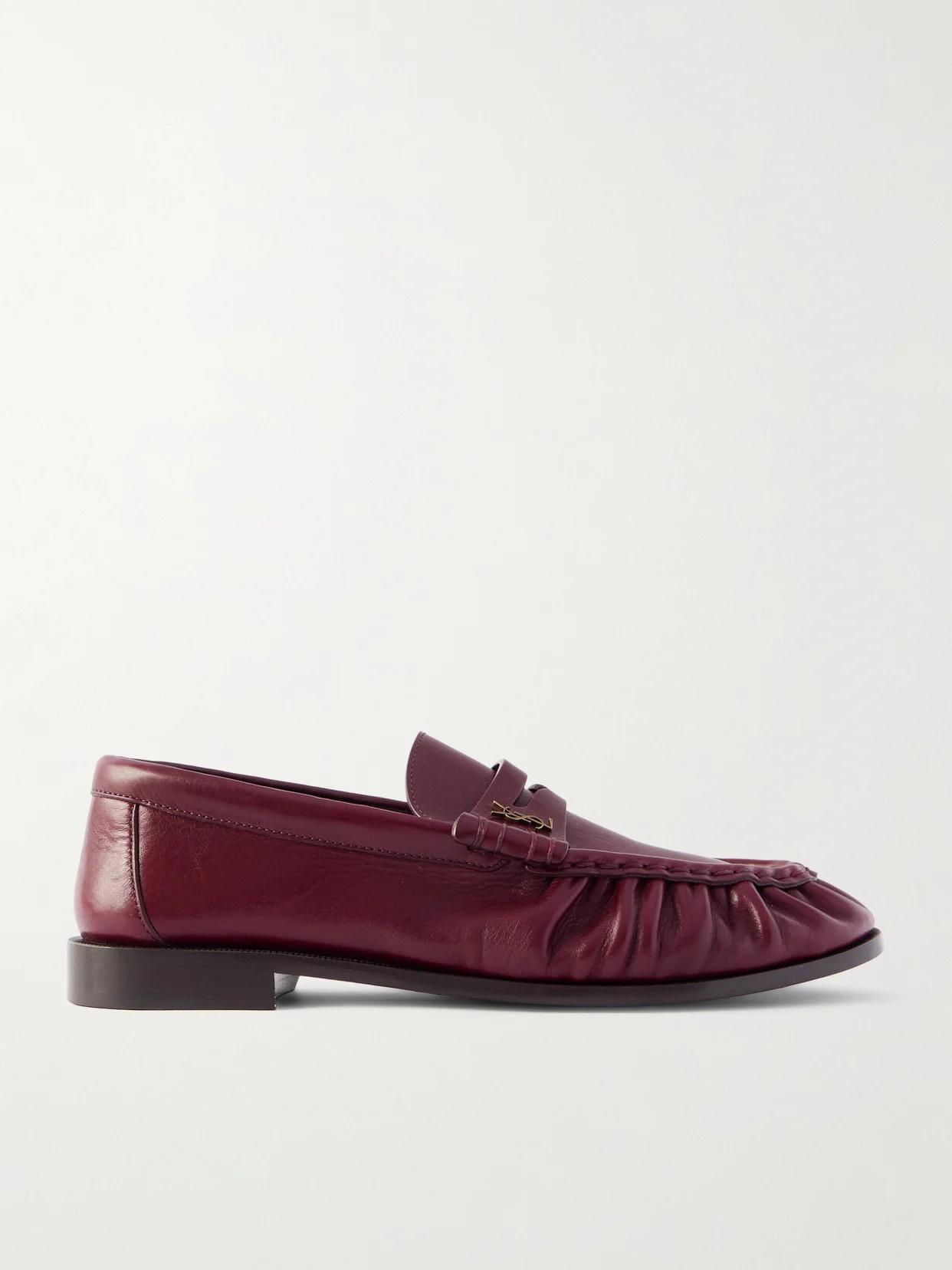 A good pair of loafers can instantly transform any outfit. SAINT LAURENT's pair has been made in Italy from burgundy leather that's softly gathered along the toes and embellished with a 'Cassandre' plaque at the penny slots. The low profile makes them feel a touch more modern than the originals they were inspired by.