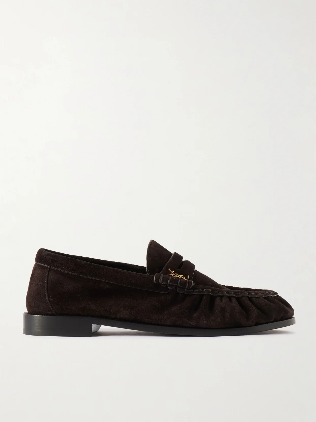 Penny loafers are classic for many reasons - they nail that tricky smart-casual dress code while being versatile and comfortable, too. SAINT LAURENT's pair has been made in Italy from supple suede and embellished with a gold 'Cassandre' plaque on the right side.