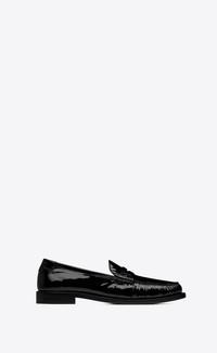PENNY LOAFERS WITH SAINT LAURENT EMBOSSED BACK TAB AND SADDLE DECORATED WITH METAL YSL INITIALS ON THE FRONT. - 100% LAMBSKIN - LEATHER SOLE - TOTAL HEEL HEIGHT: 1.5 CM / 0.6 INCHES - YSL MONOGRAM IN CHROME-BLACK METAL - STYLE ID 670232AAARG1000 - MADE IN ITALY