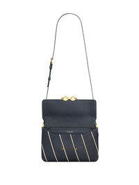 Le Maillon striped shoulder bag Highlights - Navy blue - Leather - Diagonal stripe pattern - Gold-tone hardware - Chain-link detailing - Foldover top - Adjustable shoulder strap - Partitioned compartment - Internal logo stamp - Internal zip-fastening pocket Composition Lining: Leather 100% Outer: Lambskin 100% SIZE & FIT Measurement DEPTH 2.6 in(6.5 cm) HEIGHT 5.5 in(14 cm) STRAP 17.7 in(45 cm) WIDTH 9.4 in(24 cm)