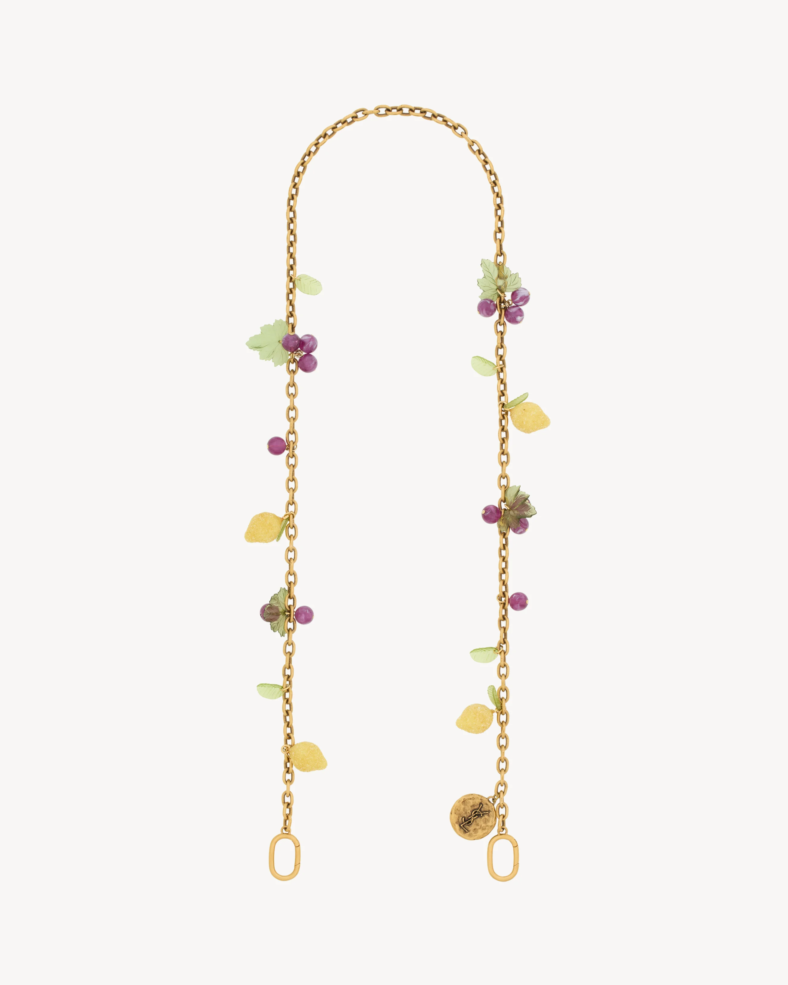 CABLE-CHAIN BAG CHARM DECORATED WITH A CASSANDRE MEDALLION AND LEMON AND GRAPE CHARMS. THIS ELEGANT AND PLAYFUL CHARMS CHAIN MAY BE DRAPED ACROSS BELT LOOPS, BAGS, AND SMALL LEATHER GOODS OR SERVE AS A DELICATE HANDLE OR SHOULDER STRAP. - BRONZE-TONE HARDWARE - SPRING GATE RING CLOSURE - LENGTH: 87 CM / 34.3" - STRAP DROP: 40 CM / 15.7" - BRASS RESIN - STYLE ID 863086JAAMF5291 - MADE IN ITALY