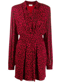 leopard print dress The cat's out of the bag now, this playfully printed leopard print red silk leopard print dress from Saint Laurent is an elegant masterpiece for transitioning from day-to-night. Wild times are about to be had! Featuring a deep V neck, long sleeves, fitted cuffs, a fitted waist, a gathered design and a short length. Made in France Composition Outer: Silk 100%, Viscose 100% Lining: Silk 100% SIZE & FIT Model measurements Height 5 ft 10 in(1.77 m) Bust/Chest 31.49 in(80 cm) Hips 35.43 in(90 cm) Waist 23.22 in(59 cm) Measurement SLEEVE LENGTH 20.47 in(52 cm) Shoulder Width 15.74 in(40 cm) LENGTH 34.64 in(88 cm) BUST 37.4 in(95 cm) FittingInformation This piece fits true to size. We recommend you get your regular size Designed for a loose fit with a close fit at the waist Made with a lightweight fabric Washing instructions Dry Clean Only