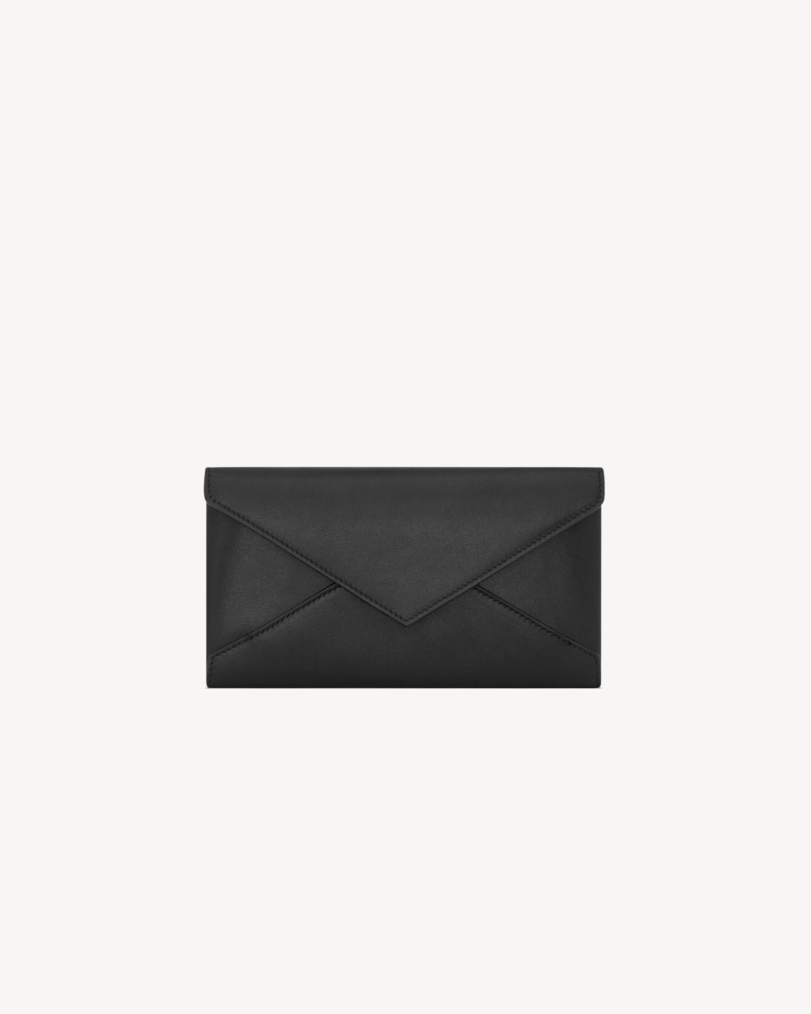 LARGE ENVELOPE WALLET DECORATED WITH THE SAINT LAURENT PARIS SIGNATURE. - LEATHER LINING - BRONZE-TONED HARDWARE - SNAP-BUTTON CLOSURE - ONE BILL COMPARTMENT - ONE FLAT POCKET - SIX CARD SLOTS - ONE REMOVABLE ZIP POUCH - DIMENSIONS: 19 X 11 X 2 CM / 7.5" X 4.3" X 0.8" - CALFSKIN, LAMBSKIN - STYLE ID 820104AADUK1000 - MADE IN ITALY