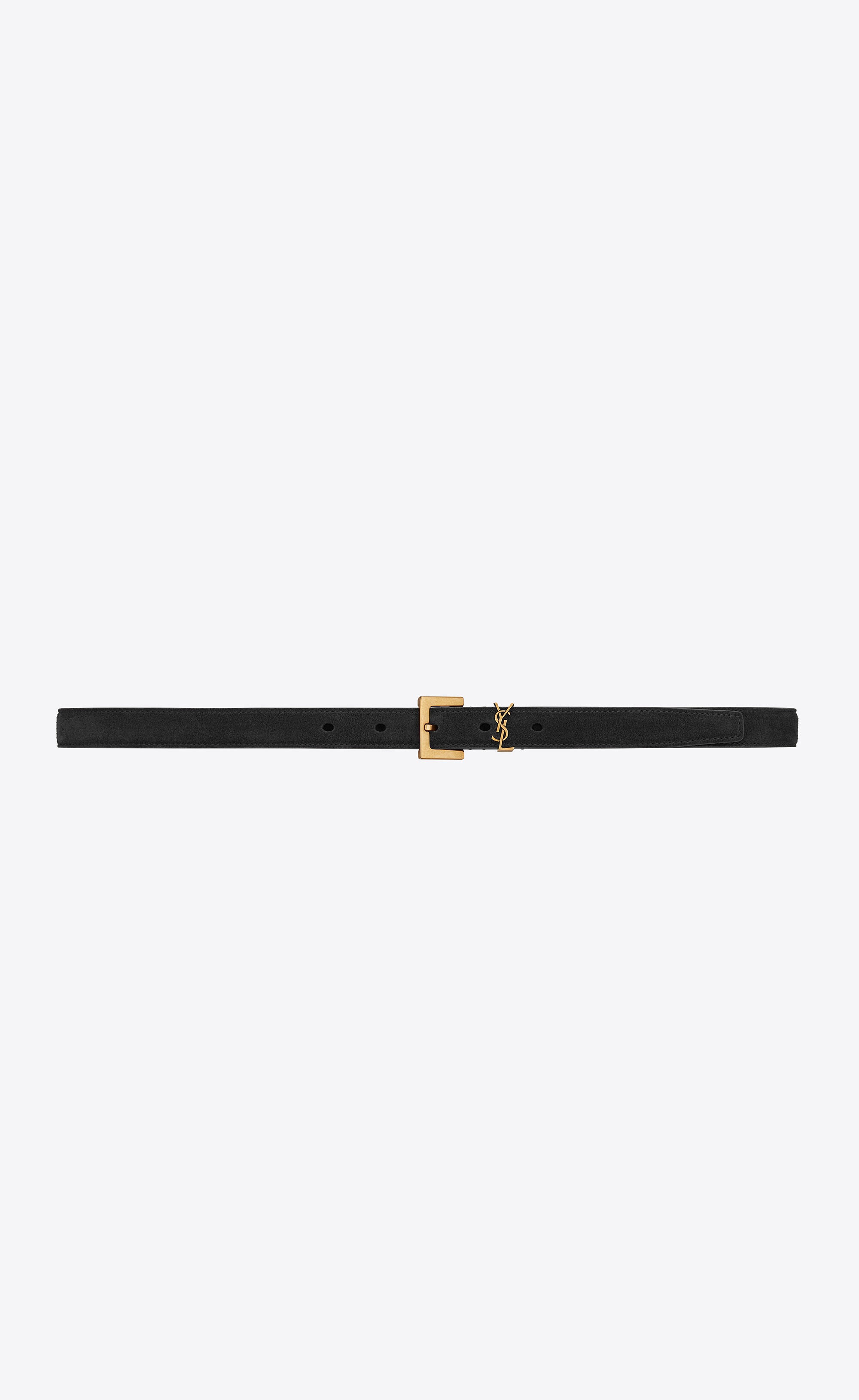 THIN BELT WITH ADJUSTABLE SQUARE BUCKLE AND FEATURING A METAL YSL MONOGRAM LOOP. - 95% CALFSKIN, 5% BRASS - WIDTH: 2 CM / 0.8 INCHES - BRONZE-TONED METAL HARDWARE - ADJUSTABLE BUCKLE FASTENING - STYLE ID 554465C0X0W1000 - MADE IN ITALY