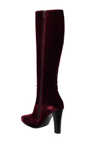 Saint Laurent Lily high boots in burgundy velvet. Zipper closure on the inner side. Heel height: 10 cm. Leather sole. Made in Italy.