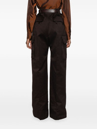 logo-embroidered trousers Highlights - Dark cedar brown - Cotton - Twill weave - High waist - Belt loops - Detachable and adjustable waist belt - Two side inset pockets - Two side flap pockets - Embroidered logo to the side - Adjustable button-fastening strap at the ankle - Full-length - Two rear flap pockets - Wide leg - Concealed fly and button fastening Made in Italy Composition Lining: Cotton 100% Outer: Bos Taurus 100%, Cotton 100% SIZE & FIT Model measurements Height 5 ft 10 in(1.78 m) Bust/Chest 31.49 in(80 cm) Hips 37 in(94 cm) Waist 23.62 in(60 cm) FittingInformation Designed with a wide-leg cut, these trousers allow for a close fit at the waist and offer a loose and roomy fit over the leg The adjustable tabs allow for fitted preferences Made from a midweight non-stretch fabric This piece fits true to size – take your usual size Measurement FRONT RISE 14.48 in(36.8 cm) INSIDE LEG 35 in(88.9 cm) BACK RISE 15.98 in(40.6 cm) HIPS 40 in(101.6 cm) Hem Width 22.99 in(58.4 cm) WAIST 30 in(76.2 cm)