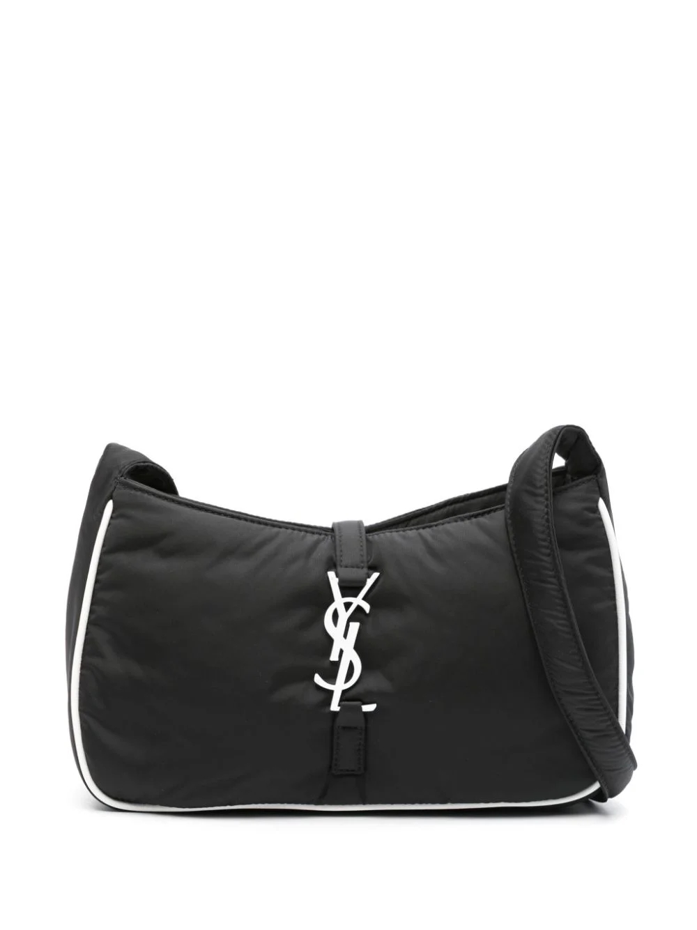 Le 5 A 7 shoulder bag This shoulder bag from Saint Laurent arrives in a versatile black hue and is made instantly recognisable by the house's signature silver-tone logo plaque to the front for a branded finish. Highlights - Black - Econyl® - Textured finish - Rectangle body - Adjustable shoulder strap - Signature cassandre logo plaque - Piped-trim detailing - Main compartment - Internal logo patch - Internal zip-fastening pocket - Hook fastening - This piece comes complete with a protective dust bag. Made in Italy Composition Outer: Brass 100%, Bos Taurus 100%, ECONYL® 100% Lining: Fabric 100% SIZE & FIT Model measurements Height 5 ft 10 in(1.78 m) Bust/Chest 33.07 in(84 cm) Hips 36.61 in(93 cm) Waist 24.8 in(63 cm) Measurement HEIGHT 5.9 in(15 cm) WIDTH 8.66 in(22 cm) DEPTH 2.36 in(6 cm)