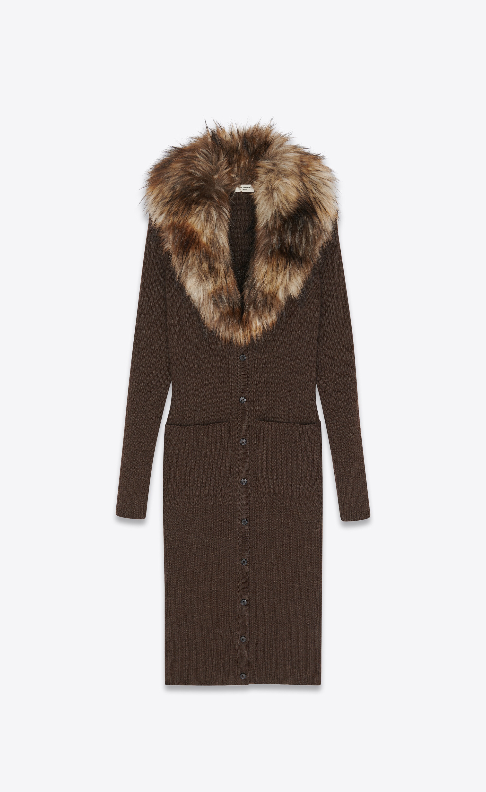 LONG CARDIGAN DRESS MADE WITH RESPONSIBLE WOOL, FEATURING A RIB KNIT AND FRONT BUTTON CLOSURE. - 100% WOOL - RESPONSIBLE WOOL - FRONT BUTTON CLOSURE - TWO PATCH POCKETS AT THE WAIST - FAUX FUR - STYLE ID 711815Y75SL2673 - MADE IN ITALY