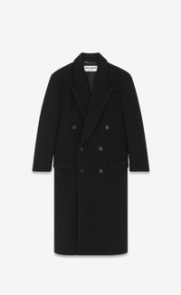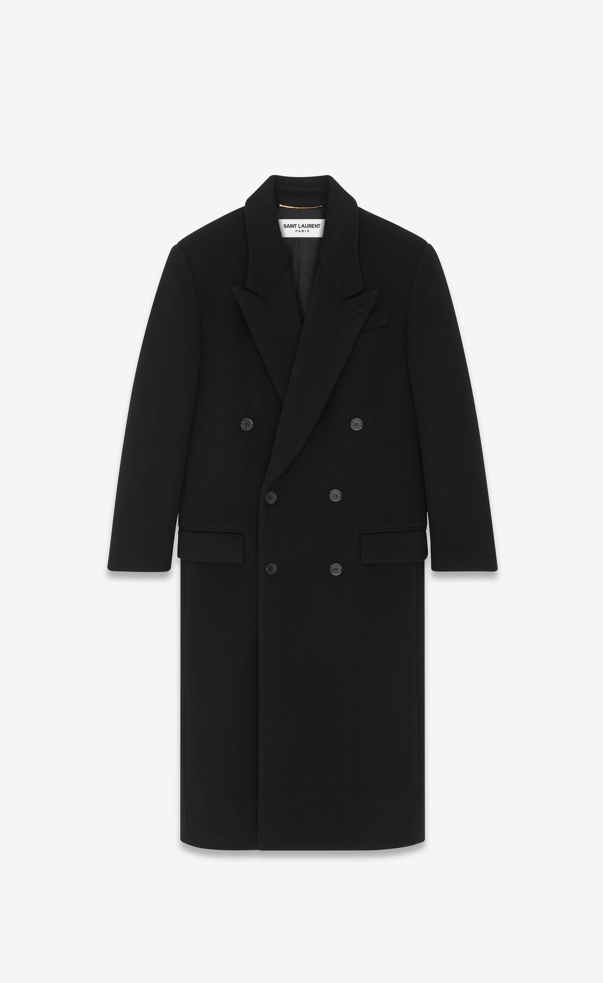 DOUBLE-BREASTED, SIX-BUTTON LONG COAT MADE WITH RESPONSIBLE WOOL, FEATURING A PEAKED LAPEL. - 100% VIRGIN WOOL - RESPONSIBLE WOOL - SILK LINING - DOUBLE-BREASTED, SIX-BUTTON CLOSURE - TWO JETTED FLAP POCKETS AT THE FRONT, ONE WELT POCKET AT THE CHEST - TWO INNER JETTED POCKETS - PEAKED LAPEL - FOUR-BUTTON CUFFS - PADDED SHOULDERS - SINGLE BACK VENT - STYLE ID 753769Y060R1005 - MADE IN ITALY