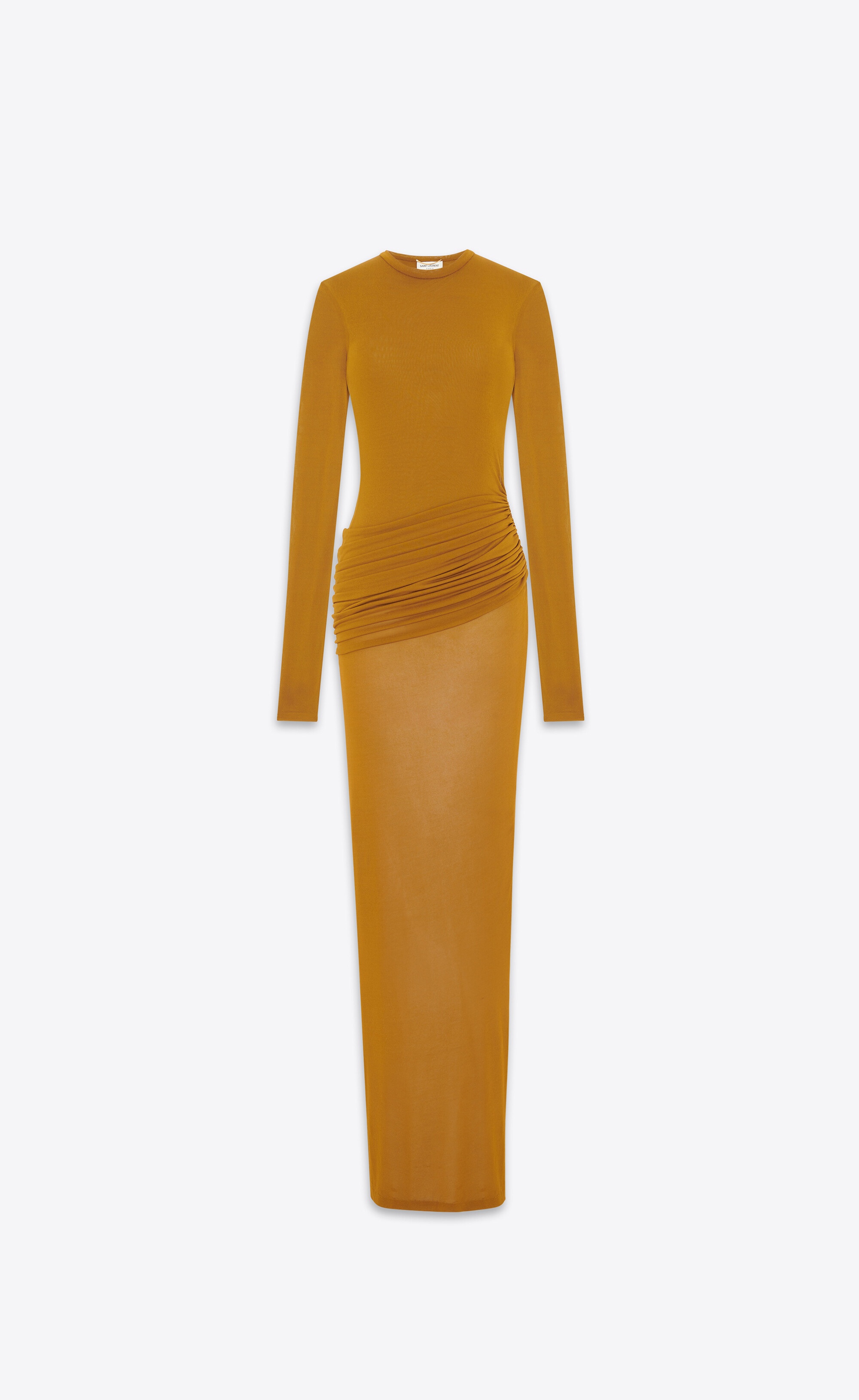 SEMI-SHEER LONG DRESS MADE WITH RESPONSIBLE VISCOSE, DRAPED AT THE HIP, FEATURING A CREWNECK, LONG SLEEVES AND INNER BODYSUIT. - 100% VISCOSE - RESPONSIBLE VISCOSE - COTTON LINING - SNAP-BUTTON CLOSURE BETWEEN THE LEGS - CREWNECK - STYLE ID 774615Y096Q2612 - MADE IN ITALY