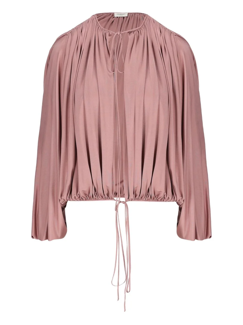 drawstring gathered-shoulder blouse Highlights - Pink - Gathered shoulders - Batwing sleeves - Round neckline - Drawstring waist - Buttoned cuffs Made in Italy Composition Viscose 100% Washing instructions Read Manufacturer Guidelines