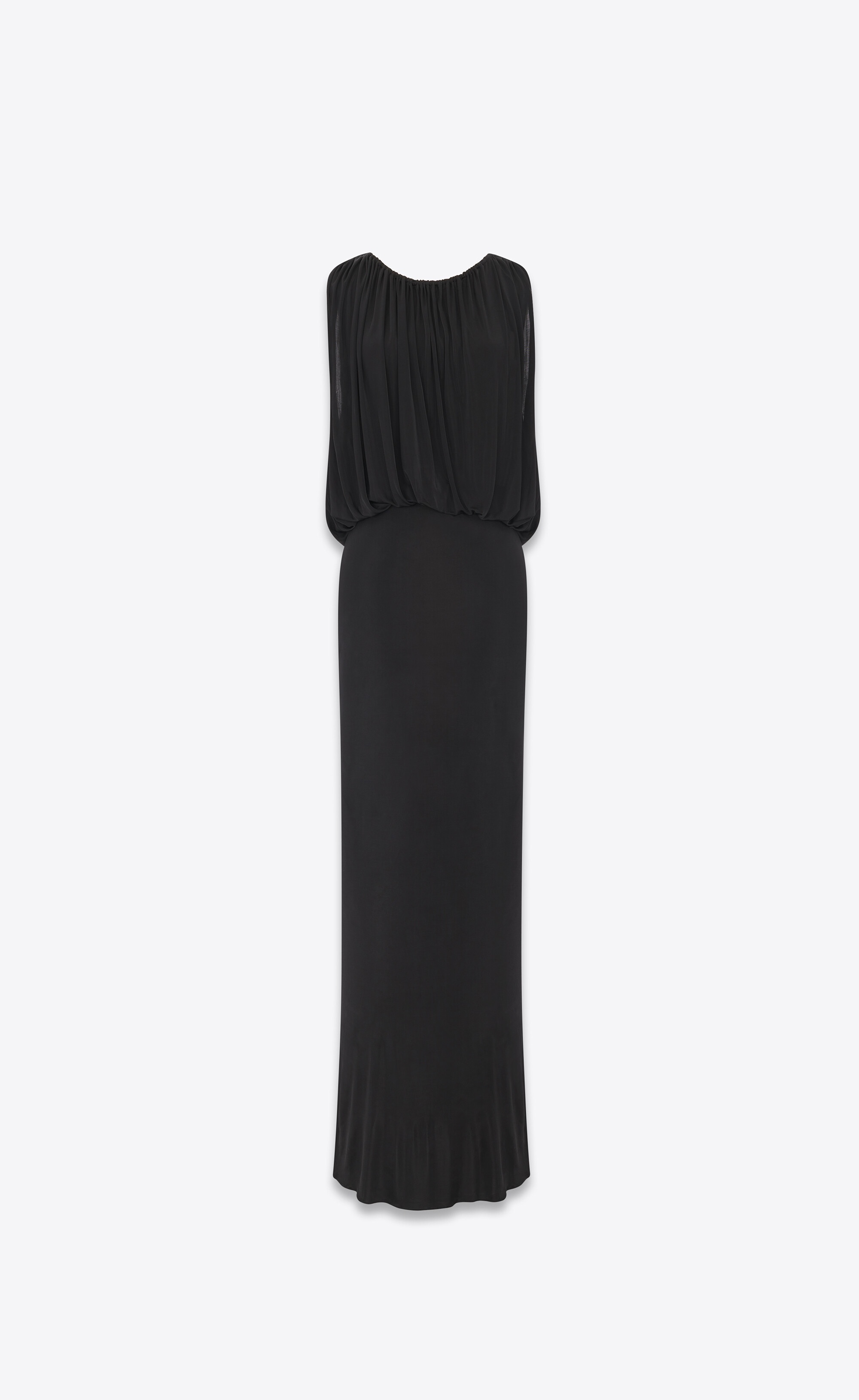 LONG DRESS MADE WITH VISCOSE FROM CERTIFIED SUSTAINABLY MANAGED FORESTS, WITH A PLUNGING V-NECK AT THE BACK, PLEATING DETAILS AND A FITTED SKIRT. - 100% VISCOSE - VISCOSE FROM CERTIFIED SUSTAINABLY MANAGED FORESTS - ROUND NECK - STYLE ID 723241Y7F981000 - MADE IN ITALY