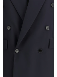 double-breasted blazer Highlights - Navy blue - Double-breasted - Button fastening - Peak lapels - Chest welt-pocket - Front flap-pockets Made in Italy Composition Virgin Wool 100% Lining: Silk 100% Washing instructions Read Manufacturer Guidelines