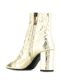 Lou ankle boots Founded in 1961 by innovative designer Yves Saint Laurent, French luxury fashion house Saint Laurent fuses expert craftsmanship with the label’s signature rock ‘n’ roll flair. Case in point: these gold-tone leather Lou ankle boots feature a pointed toe, a side zip fastening, cracked effect leather and a high block heel. Made in Italy Composition Outer: Calf Leather 100% Lining: Calf Leather 100% Sole: Calf Leather 100% SIZE & FIT Measurement CIRCUMFERENCE 8.66 in(22 cm) HEEL 2.95 in(7.5 cm) HEIGHT 5.11 in(13 cm)
