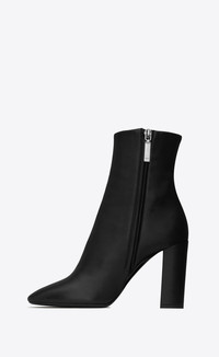 ANKLE BOOTS WITH AND ALMOND TOE AND THICK COVERED HEEL DECORATED WITH A METAL YSL MONOGRAM PIN, FEATURING A SIDE ZIP CLOSURE. - 100% SHEEPSKIN - TOTAL HEEL HEIGHT: 7 CM / 2.7 INCHES - LEATHER SOLE - BLACK METAL YSL MONOGRAM PIN - SAINT LAURENT PARIS-ENGRAVED ZIP - STYLE ID 5293500RRVV1000 - MADE IN ITALY