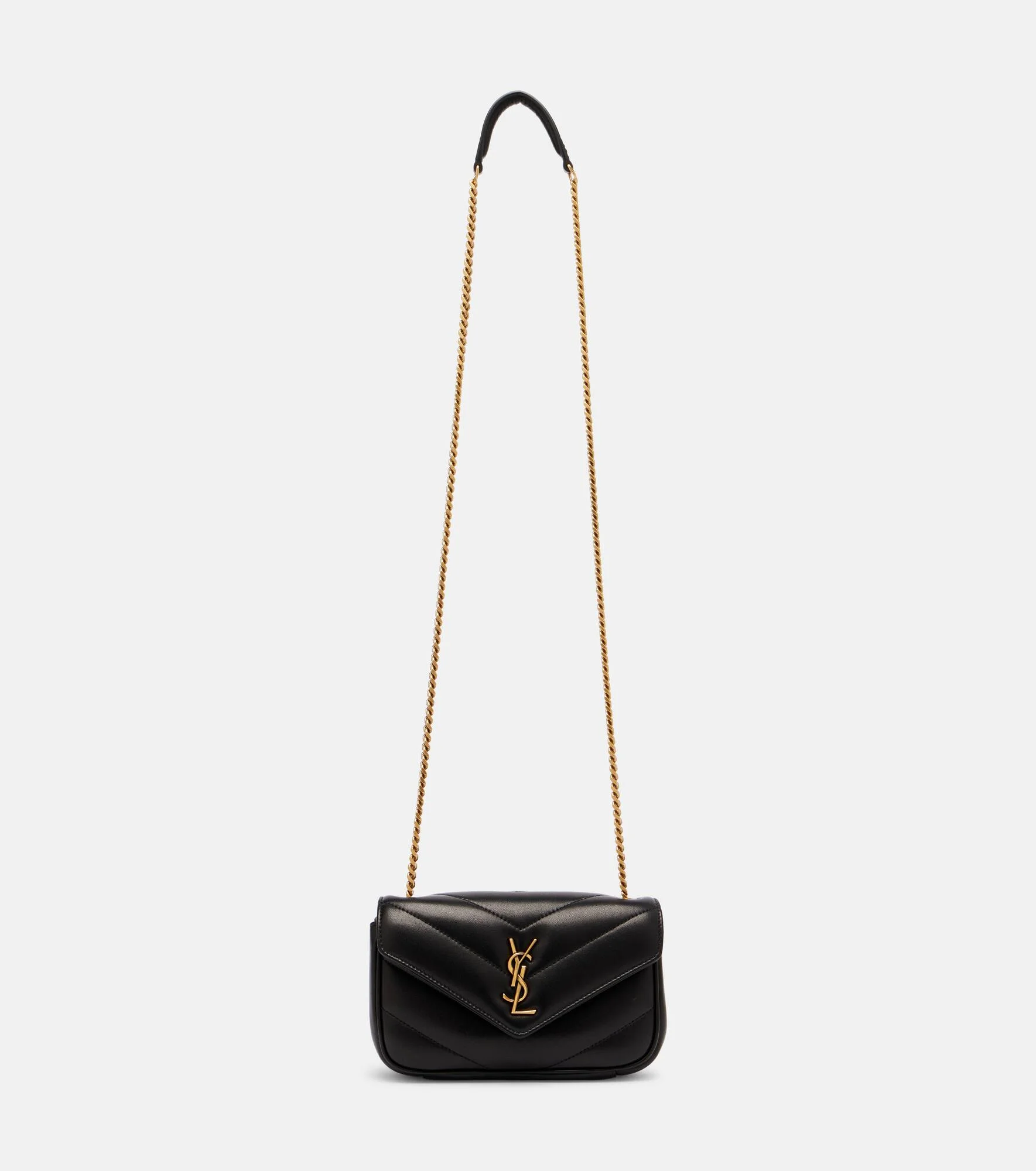 Since its conception in 1961, Saint Laurent has been coveted for its elegant Parisian aesthetic. Crafted from supple leather, the Lou Lou Mini crossbody bag features a detachable leather pouch and the house's signature Cassandre hardware at the front. Product Details - Material: lamb leather - Lining: lamb leather - Made in Italy - Designer color name: Black - Item color: black - Hardware color: brass - Closure: magnetic fastening - Internal details: Card slots - Detachable chain and leather shoulder strap - Detachable pouch - Includes: dust bag, box - Item number: P01125970 Size & Fit - Height 11.5cm-4.5" - Width 20cm-8" - Depth 4.5cm-2" - Chain length 119cm-47"