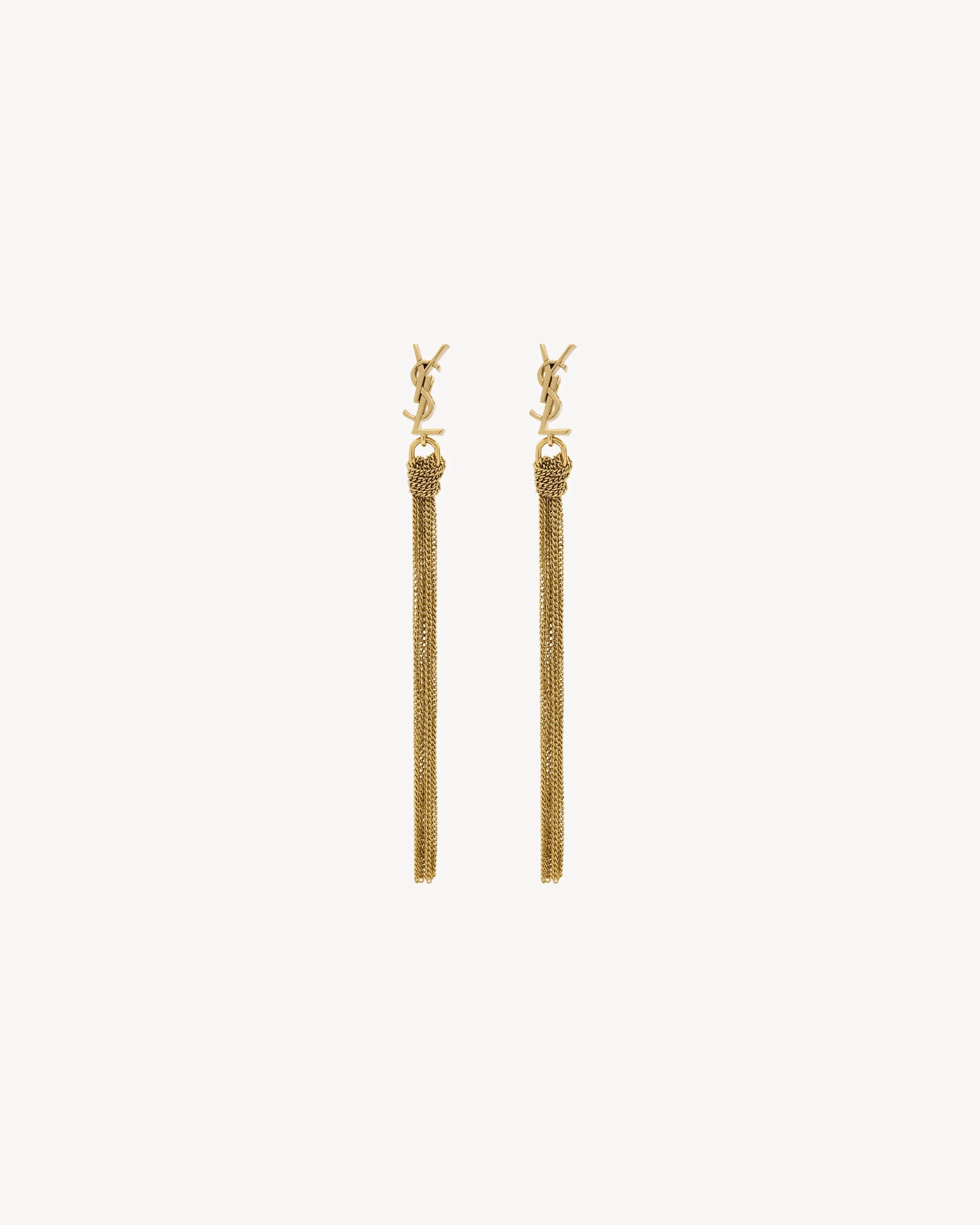 CASSANDRE STUD EARRINGS WITH A CURB-CHAIN TASSEL PENDANT. - POST AND CLUTCH CLOSURE FOR PIERCED EARS - CASSANDRE STUD - LENGTH: 8 CM / 3.1" - BRASS - STYLE ID 803195Y15008030 - MADE IN COSTA RICA
