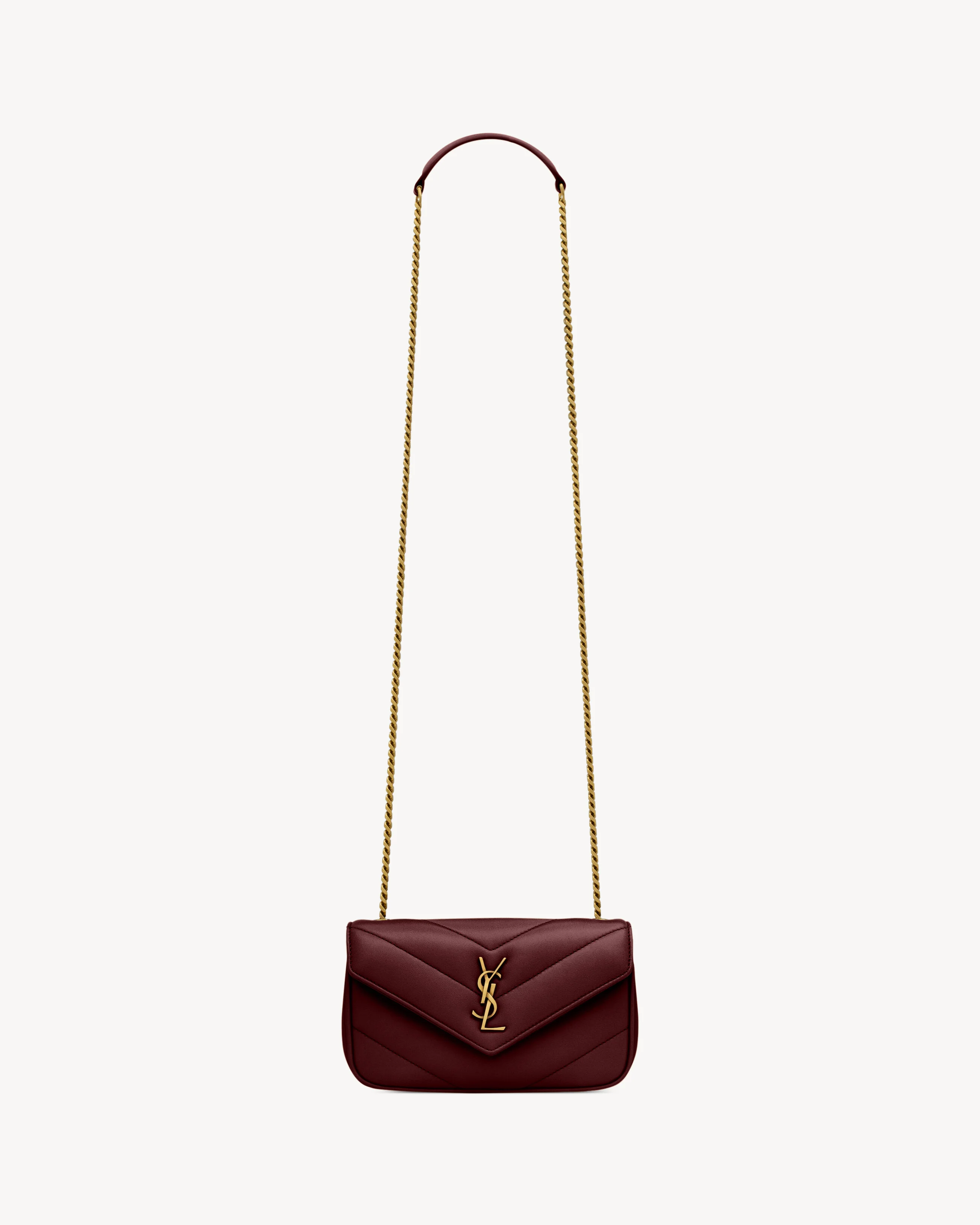 THE MINI VERSION OF THE LOULOU CHAIN BAG IN LAMBSKIN, DECORATED WITH THE ICONIC CHEVRON-QUILTED TOPSTITCHING. THIS LIGHTWEIGHT BAG FEATURES A REMOVABLE LEATHER POUCH AND LEATHER AND CHAIN STRAP FOR CROSSBODY CARRY. - LEATHER LINING - BRONZE-TONED HARDWARE - MAGNETIC SNAP CLOSURE - ONE FLAP POCKET - DIMENSIONS: 20 X 12 X 5 CM / 7.9" X 4.7" X 2" - STRAP DROP: 55 CM / 21.6" - LAMBSKIN, BRASS - STYLE ID 821749AAEAX6197 - MADE IN ITALY