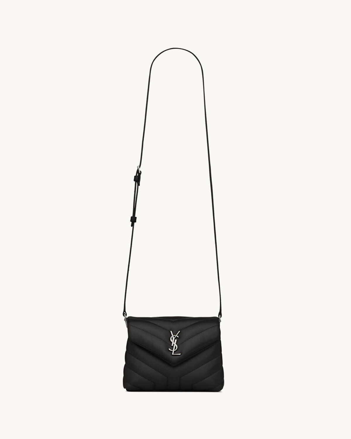 A MINI VERSION OF THE LOULOU, TOPSTITCHED WITH SAINT LAURENT'S ICONIC CHEVRON QUILTING. PRACTICAL AND LIGHTWEIGHT, IT FEATURES TWO COMPARTMENTS. ITS ADJUSTABLE AND DETACHABLE LEATHER STRAP OFFERS DIFFERENT CARRIES. - GROSGRAIN LINING - NICKEL OXIDE HARDWARE - INTERIOR ZIPPED POCKET - THREE CARD SLOTS - DIMENSIONS: 20 X 14 X 7.5 CM /7.9 X 5.5 X 3 INCHES - STRAP LENGTH: 51 TO 60 CM /20.1 TO 23.6 INCHES - CALFSKIN LEATHER - STYLE ID 678401DV7061000 - MADE IN ITALY