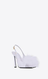 SLINGBACK SANDALS WITH A SQUARED PEEP-TOE AND COVERED FLARED HEEL, DECORATED WITH A RHINESTONE BUCKLE ON THE ANKLE STRAP AND FEATHER TASSEL ON THE TOE. - 100% SILK - LEATHER SOLE - ADJUSTABLE ANKLE STRAP - TOTAL HEEL HEIGHT: 11 CM / 4.3 INCHES - RHINESTONE-ENCRUSTED GOLD-TONE METAL BUCKLE - STYLE ID 7175621UU001720 - MADE IN ITALY