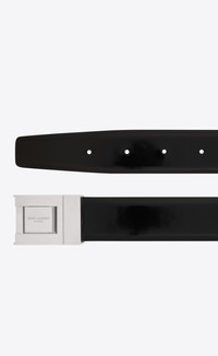 BELT WITH BUCKLE FEATURING A SQUARE INSERT WITH ENGRAVED SAINT LAURENT PARIS SIGNATURE. - 95% CALFSKIN LEATHER, 5% METAL - DIMENSIONS: 3 CM / 1.2 INCHES - SILVER-TONED HARDWARE - ADJUSTABLE NOTCH AND POST CLOSURE - STYLE ID 658517AAB9H1000 - MADE IN ITALY