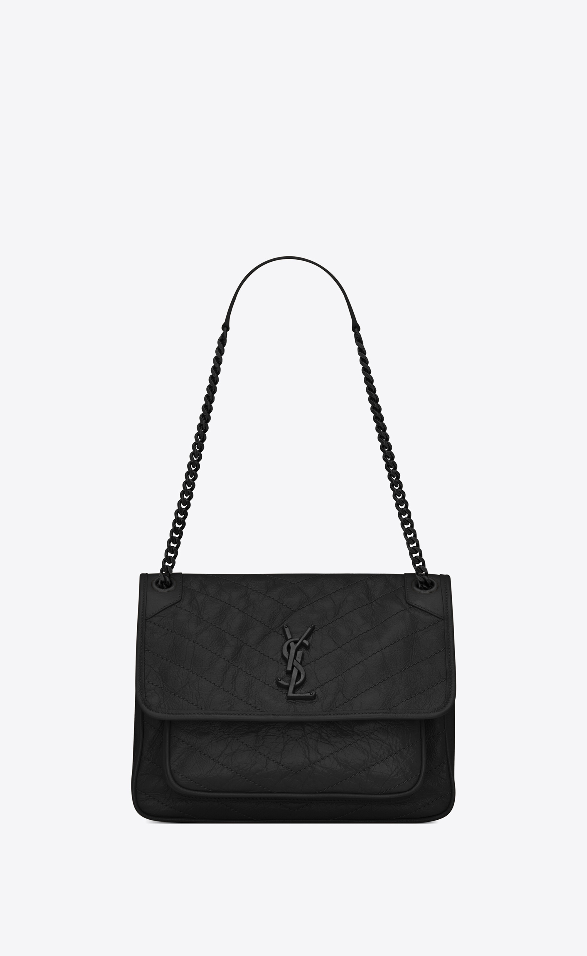 SAINT LAURENT MONOGRAM BAG MADE WITH METAL-FREE TANNED LEATHER AND ORGANIC COTTON LINING WITH FRONT FLAP, LEATHER-ENCASED YSL MONOGRAM, CHAIN AND LEATHER CONVERTIBLE SHOULDER STRAP, CENTRAL COMPARTMENT, AND OPEN BACK POCKET. - 100% CALFSKIN LEATHER - CHROME FREE, METAL FREE TANNED LEATHER AND ORGANIC COTTON LINING - DIMENSIONS: 28 X 20 X 8,5 CM/11 X 7.8 X 3.1 INCHES - SINGLE STRAP DROP: 50 CM; DOUBLED STRAP DROP 28 CM - HARDWARE IN BLACK-TONED METAL - ONE CENTRAL COMPARTMENT, ONE INTERIOR POCKET, ONE ZIPPERED POCKET, ONE OPEN POCKET ON BACK, ONE POCKET UNDER THE FLAP - GROSGRAIN LINING - STYLE ID 809452615 - MADE IN ITALY