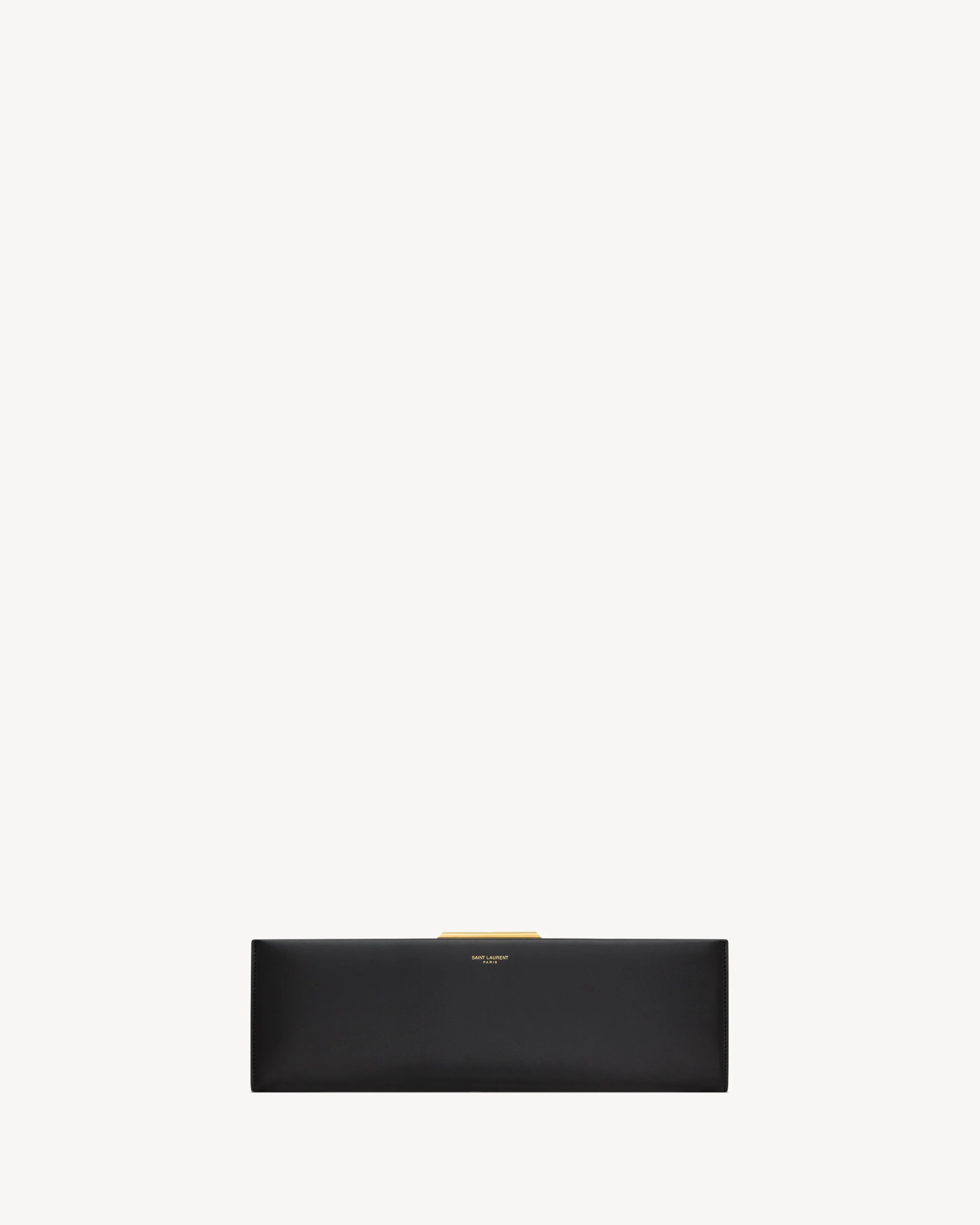 THIN CLUTCH CASE WITH A KISS-LOCK CLOSURE, EMBOSSED WITH THE SAINT LAURENT PARIS SIGNATURE. FEATURING A STOWABLE CHAIN SHOULDER STRAP. - LEATHER LINING - BRONZE-TONE HARDWARE - KISS-LOCK CLOSURE - ONE INNER POCKET - DIMENSIONS: 26 X 10 X 1.5–4 CM / 10.2" X 3.9" X 0.6–1.6" - STRAP DROP: 28 CM / 11" - 90% CALFSKIN10% BRASS - STYLE ID 697658AAAML1000 - MADE IN ITALY