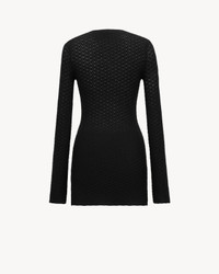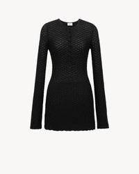 SEMI-SHEER LONG-SLEEVE MINI DRESS MADE WITH CERTIFIED WOOL, FEATURING A CROCHET EFFECT AND PLUNGING FRONT SLIT WITH KNITTED BUTTONS. - CERTIFIED WOOL - ROUND NECK - 90% WOOL, 10% POLYESTER - STYLE ID 817608Y76YE1000 - MADE IN ITALY