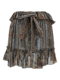 paisley-print ruffled mini skirt Highlights - Steel blue - Paisley print - Ruffled trim - Rear tie fastening - Silk fabric - Mini length Made in Italy Composition Silk 100% Washing instructions Read Manufacturer Guidelines