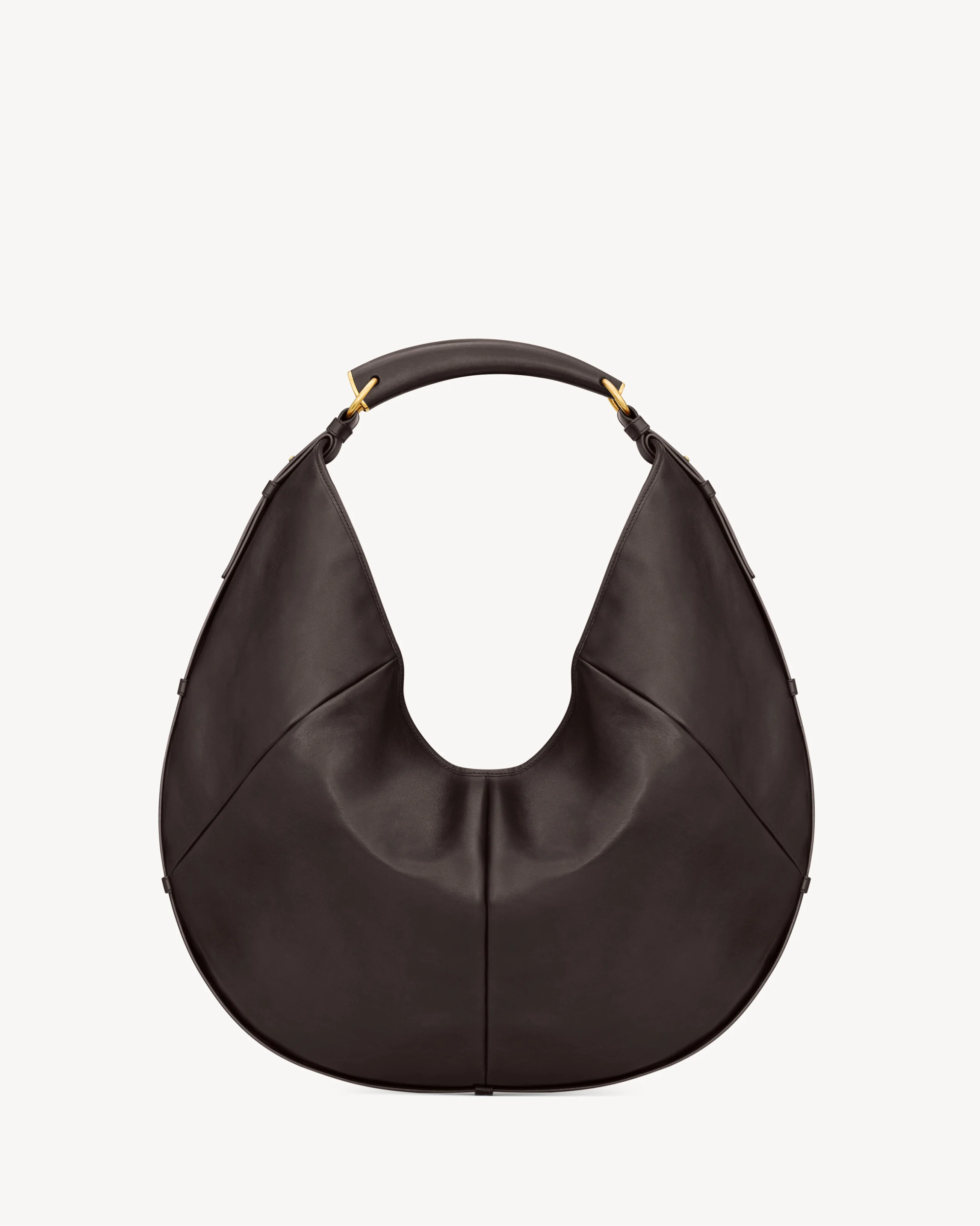 A MODERN REVIVAL OF THE ARCHIVAL MOMBASA HOBO BAG IN SUPPLE CALFSKIN, LINED IN TONAL SUEDE. THIS SPACIOUS, CASUAL SILHOUETTE IS ELEVATED WITH A LEATHER COVERED HANDLE FOR HAND OR SHOULDER CARRY. - SUEDE LINING - BRONZE-TONE HARDWARE - MAGNETIC SNAP CLOSURE - ONE ZIP POCKET - DIMENSIONS: 24–48 X 31–44 X 3 CM / 9.4–18.9" X 12.2–17.3" X 1.2" - HANDLE DROP: 31 CM / 12.2" - CALFSKIN BRASS - STYLE ID A0011MAAGWK2050 - MADE IN ITALY