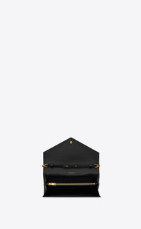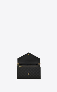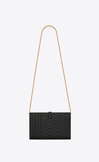 CHAIN WALLET WITH A FRONT FLAP MADE WITH METAL-FREE TANNED LEATHER, DECORATED WITH METAL YSL INITIALS AND A MIX OF VERTICAL, CHEVRON AND DIAMOND QUILTED OVERSTITCHING, FEATURING A DETACHABLE CHAIN STRAP. - 100% CALFSKIN LEATHER - CHROME FREE AND METAL FREE TANNED LEATHER - DIMENSIONS: 22,5 X 14 X 4 CM / 8.8 X 5.5 X 1.5 INCHES - STRAP DROP: 48 CM / 18.8 INCHES - GOLD-TONED METAL HARDWARE - LEATHER LINING - SNAP-BUTTON CLOSURE - INTERIOR: TWO MAIN COMPARTMENTS SEPARATED BY A ZIP POUCH, ONE BILL COMPARTMENT, 10 CARD SLOTS - STYLE ID 809316926 - MADE IN ITALY