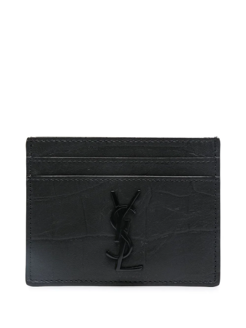 Monogram logo plaque cardholder Highlights - Black - Leather - Embossed crocodile effect - Logo plaque - Card slots Made in Italy Composition Outer: Calf Leather 100% SIZE & FIT Measurement WIDTH 4.13 in(10.5 cm) LENGTH 3.93 in(10 cm) HEIGHT 3.14 in(8 cm) DEPTH 0.19 in(0.5 cm)