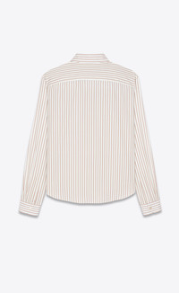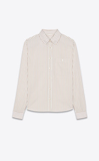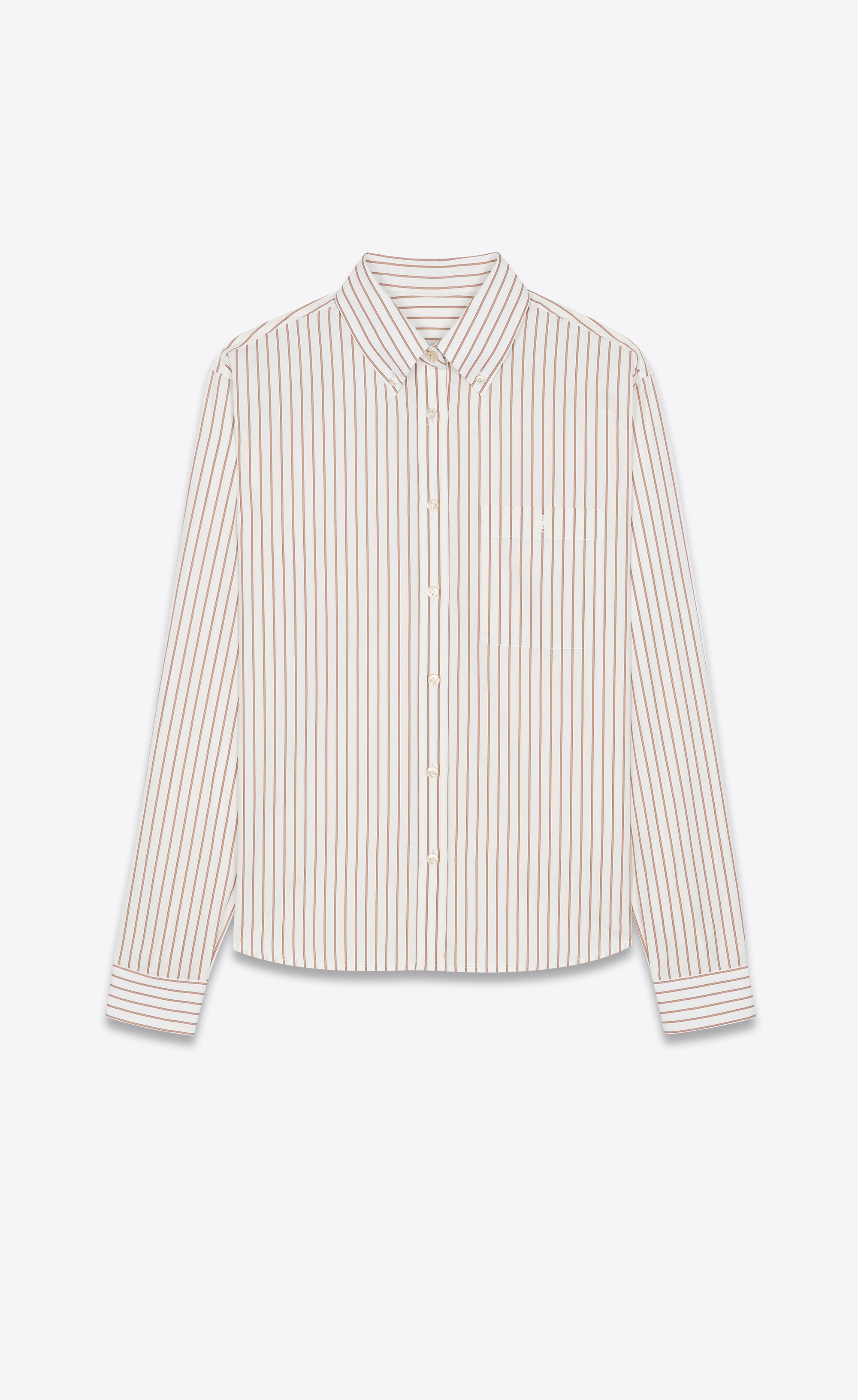 LONG-SLEEVED SHIRT MADE WITH ORGANIC COTTON FEATURING A POINTED COLLAR, FRONT BUTTON CLOSURE AND A PATCH POCKET EMBROIDERED WITH THE YSL INITIALS, DECORATED WITH A STRIPED PRINT. - 100% COTTON - ORGANIC COTTON - FRONT BUTTON CLOSURE - PATCH POCKET ON FRONT - POINTED COLLAR - BUTTONED CUFFS - STYLE ID 695999Y6E779260 - MADE IN ITALY