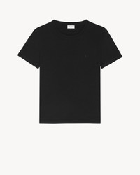 SLIM-FIT T-SHIRT WITH EMBROIDERED YSL MONOGRAM ON THE CHEST. - 100% VIRGIN WOOL - ROUND NECK - STRAIGHT HEM - STYLE ID 711847Y36XE1000 - MADE IN ITALY