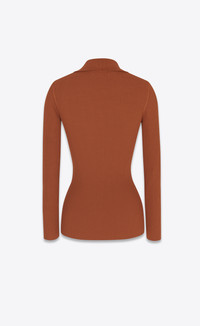 LONG-SLEEVED TOP WITH V-NECK FEATURING POINTED COLLAR, WITH ALL-OVER RIBBING AND METAL YSL MONOGRAM ON THE HEM. - 80% VISCOSE, 20% POLYESTER - V-NECK WITH POINTED COLLAR - STYLE ID 705400Y75PU2005 - MADE IN ITALY