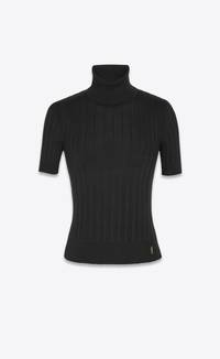 SHORT-SLEEVED TOP WITH TURTLENECK, ALL-OVER RIBBING AND METAL YSL MONOGRAM ON THE HEM. - 98% SILK, 2% POLYAMIDE - TURTLENECK - STYLE ID 705377Y75PY1000 - MADE IN ITALY