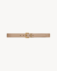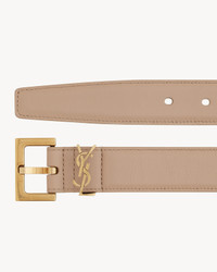 BELT WITH ADJUSTABLE SQUARE BUCKLE FEATURING A METAL YSL MONOGRAM LOOP. - 100% CALFSKIN LEATHER - WIDTH: 3 CM / 1.2 INCHES - BRONZE-TONED METAL HARDWARE - ADJUSTABLE BUCKLE FASTENING - STYLE ID 634437BOO0W2721 - MADE IN ITALY