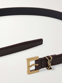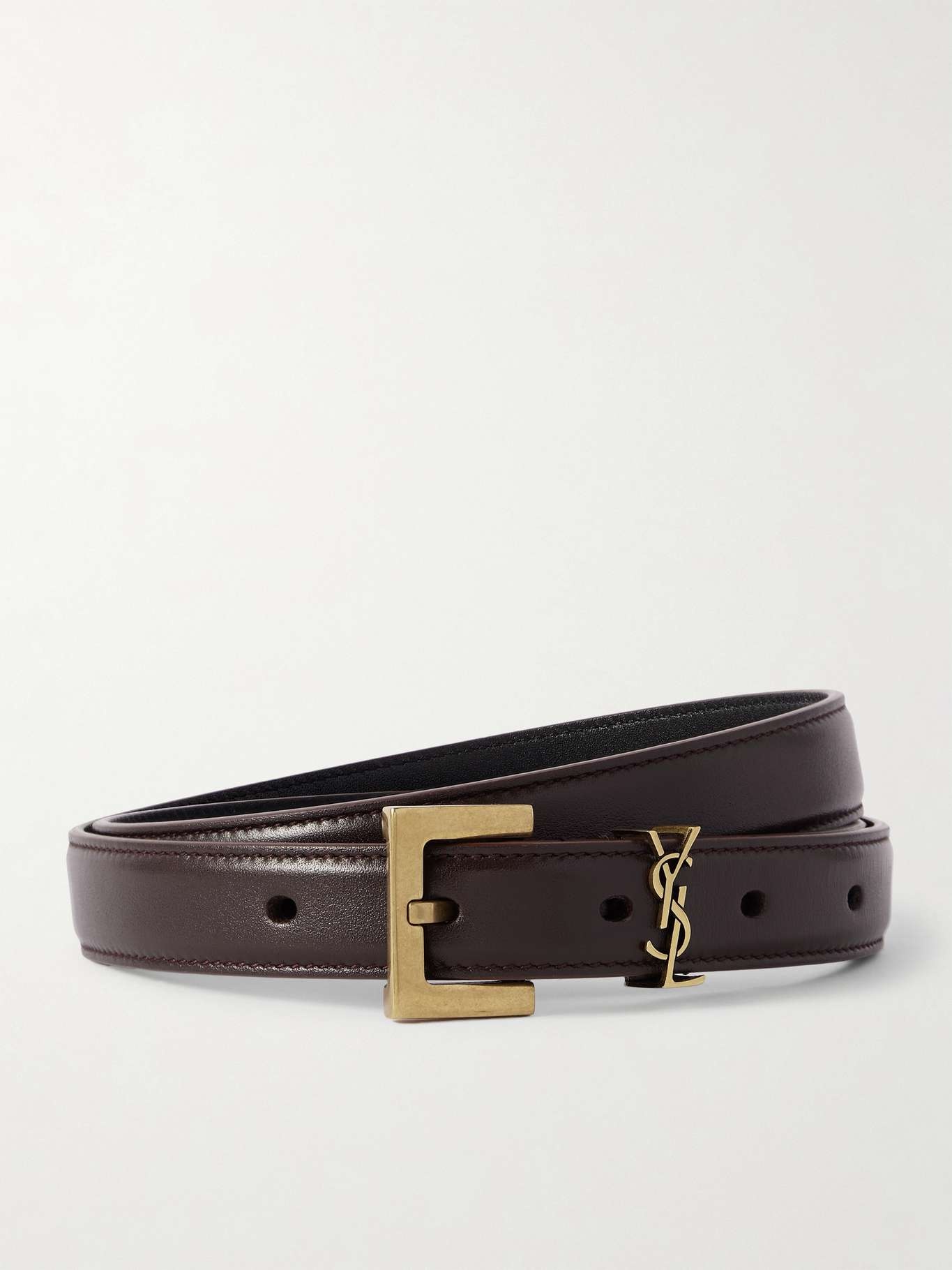 EDITORS'NOTES The prong on SAINT LAURENT's 'Cassandre' belt is delicately carved to form the house's iconic 'YSL' monogram. It's been made in Italy from soft leather and cut in a slim 2cm width that'll work well with skinny jeans. SIZE & FIT - Designed to be worn on the hips or waist - Measurements can be found in the link below DETAILS & CARE - Burgundy leather (Calf) - Buckle fastening