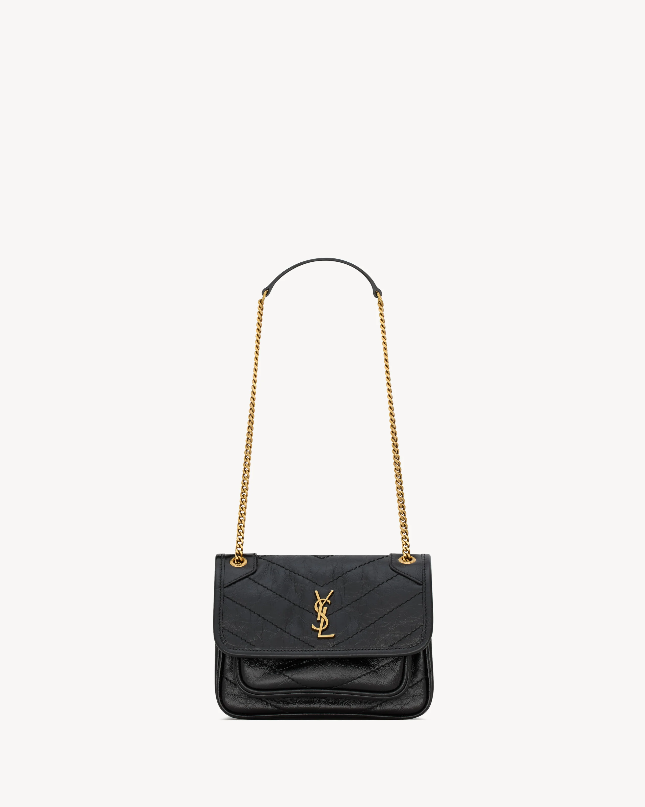 SOFT BAG IN VINTAGE LEATHER, DECORATED WITH THE CASSANDRE AND CHEVRON-QUILTED TOPSTITCHING. THIS LIGHTWEIGHT BAG FEATURES TWO COMPARTMENTS AND A LARGE FLAT POCKET AT THE BACK. A SLIDING LEATHER-AND-CHAIN STRAP ALLOWS FOR BOTH SHOULDER AND CROSSBODY CARRY. - COTTON LINING - BRONZE-TONE HARDWARE - MAGNETIC SNAP CLOSURE - ONE BACK POCKET - ONE OPEN POCKET UNDER FLAP - DIMENSIONS: 21 X 16 X 7.5 CM / 8.3" X 6.3" X 3" - SINGLE-STRAP DROP: 57 CM / 22.4" - DOUBLE-STRAP DROP: 30 CM / 11.8" - CALFSKIN LEATHER, METAL - STYLE ID 6331850EN071000 - MADE IN ITALY