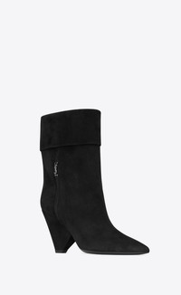 ANKLE BOOTS WITH A POINTED TOE AND A COVERED CONE HEEL, DECORATED WITH INTERLOCKING METAL YSL INITIALS ON THE SIDE AND A FOLDED SHAFT. - 100% GOATSKIN - LEATHER SOLE - TOTAL HEEL HEIGHT: 8.5 CM / 3.3 INCHES - YSL MONOGRAM IN SILVER-TONE METAL - STYLE ID 689212C20001000 - MADE IN ITALY