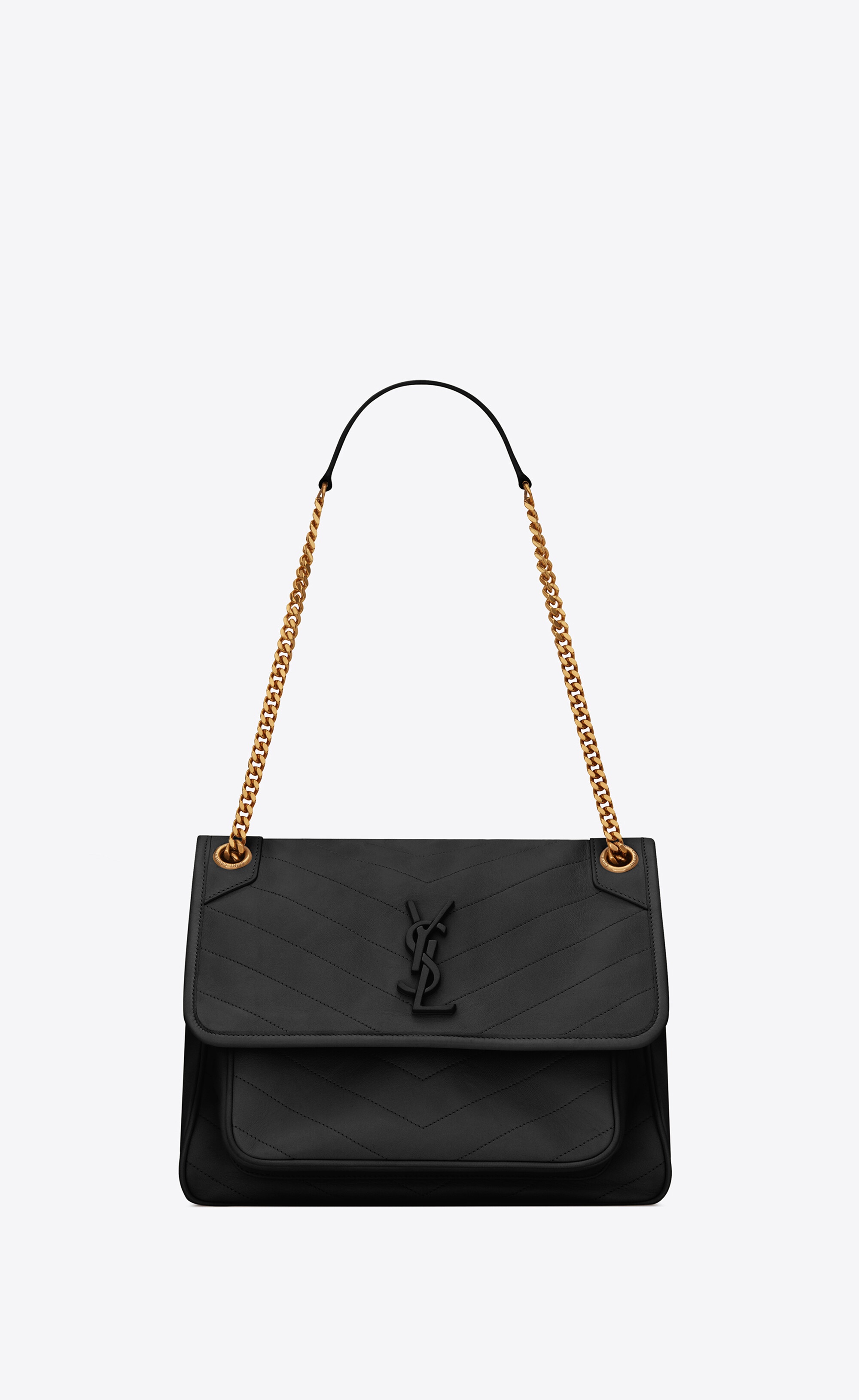 MONOGRAM SAINT LAURENT BAG WITH A FLAP, DECORATED WITH LEATHER-COVERED YSL INITIALS AND FEATURING A LEATHER-REINFORCED CHAIN STRAP THAT CAN BE WORN CROSS-BODY OR DOUBLED FOR SHOULDER CARRY. - 100% LAMBSKIN - DIMENSIONS: 28 X 20 X 8,5 CM / 11 X 7.8 X 3.3 INCHES - BRONZE-TONED METAL HARDWARE - GROSGRAIN LINING - MAGNETIC SNAP CLOSURE - INTERIOR: ONE MAIN COMPARTMENT, ONE OPEN POCKET, ONE ZIP POCKET, ONE POCKET UNDER THE FLAP - EXTERIOR: ONE MAGNETIC POCKET AT THE BACK - UNFOLDED SHOULDER STRAP DROP: 53 CM - FOLDED SHOULDER STRAP DROP: 30 CM - STYLE ID 809157879 - MADE IN ITALY